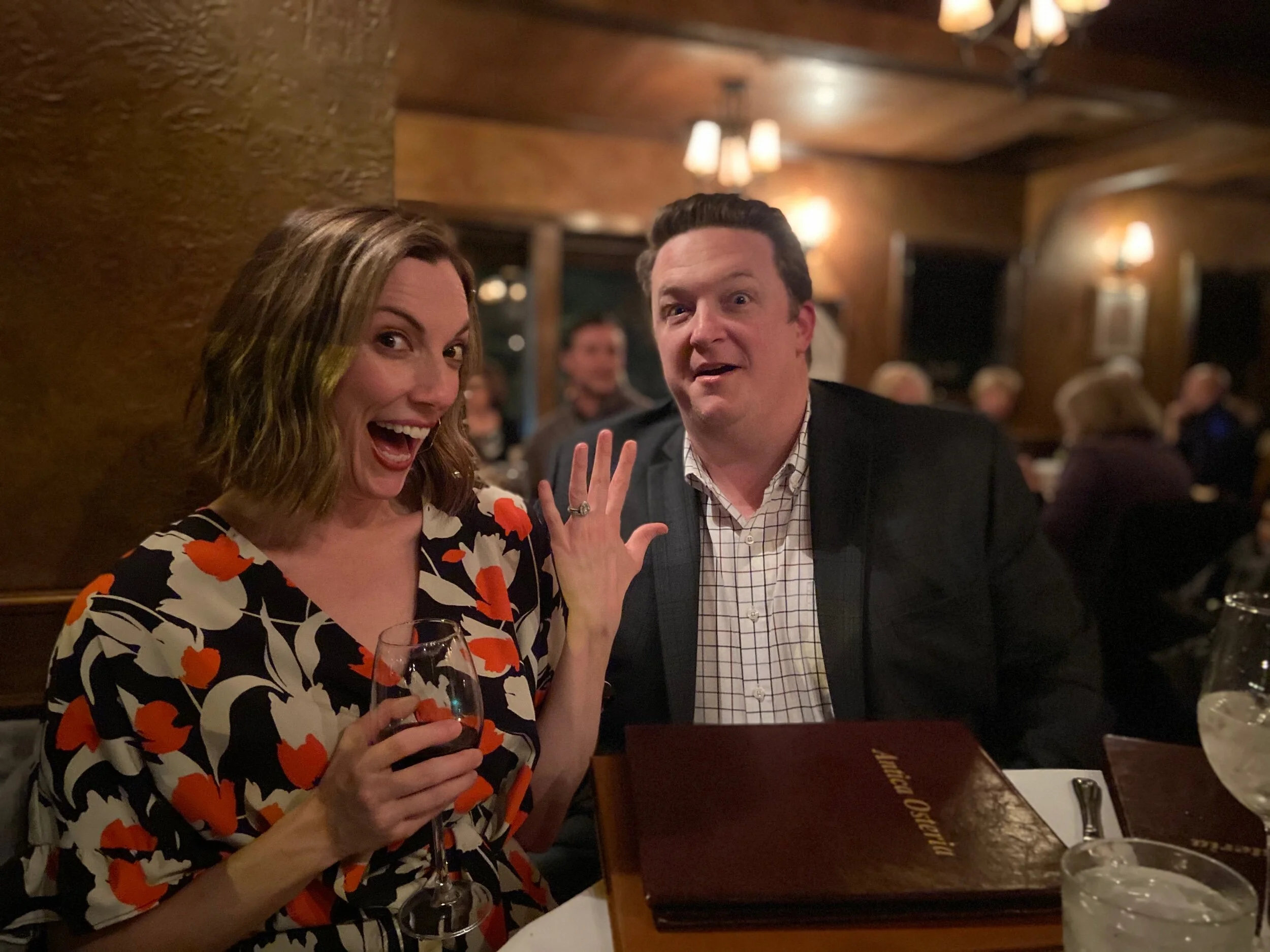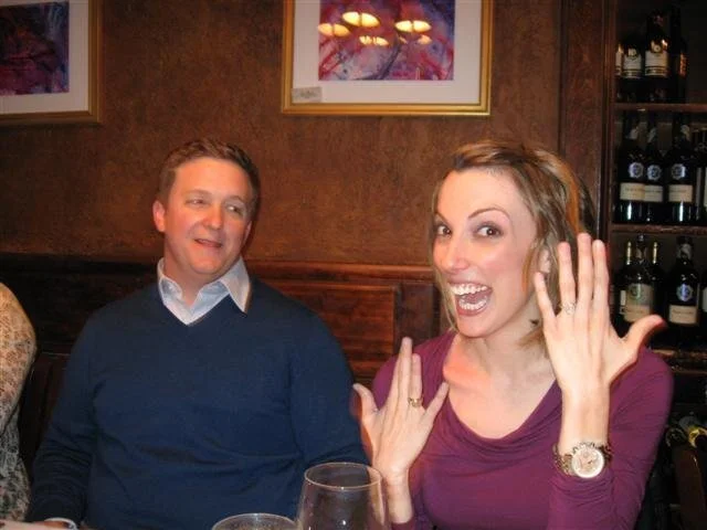 At surprise engagement party after dinner. Yes, I definitely was still drinking, I mean, celebrating.